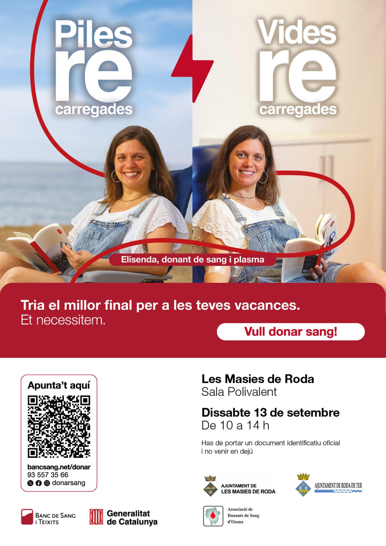 - Organitza: Banc de Sang i Teixits, amb la col·laboració de l’Ajuntament de Les Masies de Roda, l’Ajuntament de Roda de Ter i l’Associació de Donants de Sang d’Osona