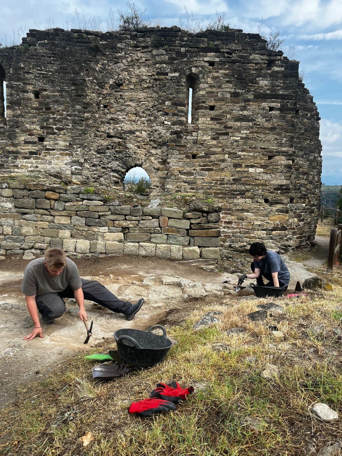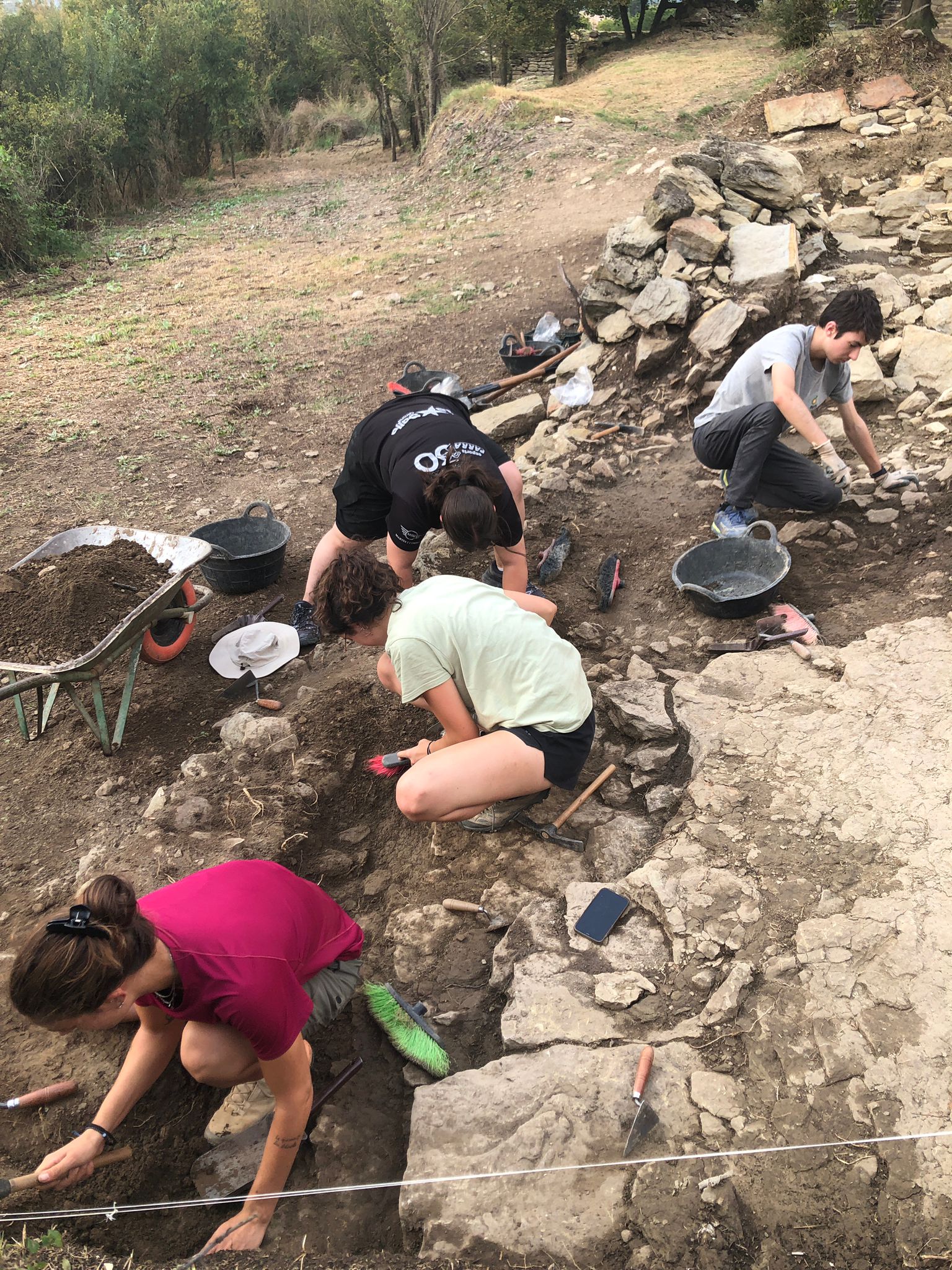 Durant aquests quinze dies d’agost, els dos equips que treballen en els dos sectors del jaciment —ibèric i medieval— estan dirigits per Anna Morales, Jordi Gibert i Montserrat de Rocafiguera a la zona ibèrica, i per Esther Travé, Imma Ollich i Albert Pratdesaba a la medieval.