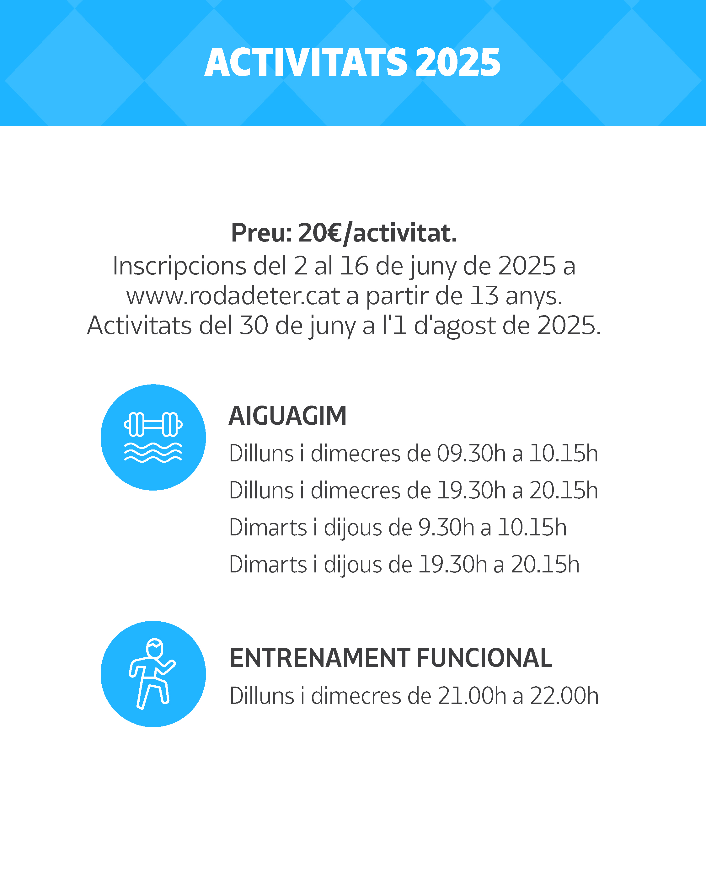 Inscripcions del 2 al 16 de juny de 2025 via web (clica aquí) a partir de 13 anys.