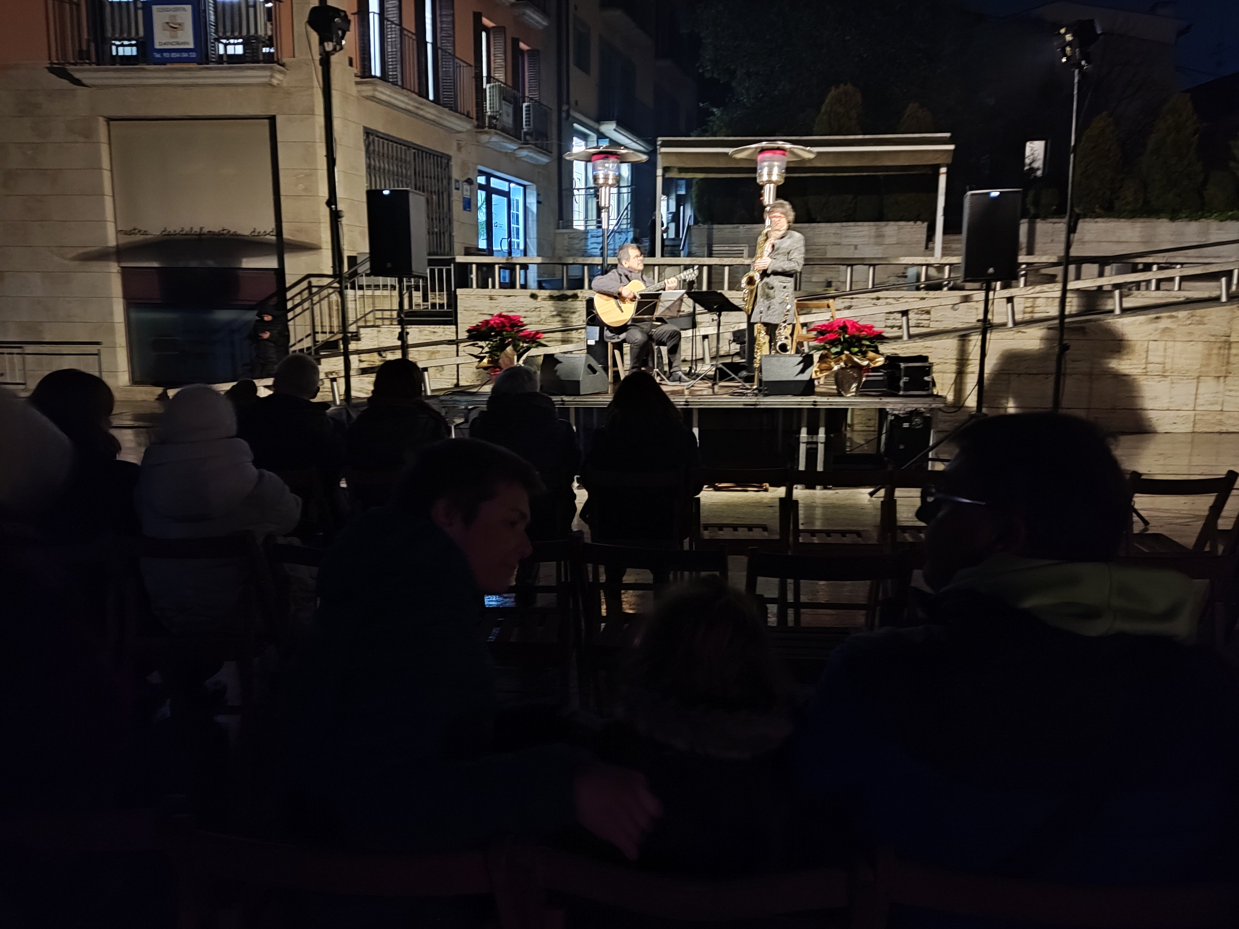 L’inici de la festa va ser a les 18 h amb el concert de Pep Poblet i Joan Garrobé, que van oferir un repertori de Nadales i cançons populars clàssiques i modernes. Tot i la temperatura de només 4 °C, el públic va respondre amb calidesa i va omplir la plaça per gaudir de l’actuació.