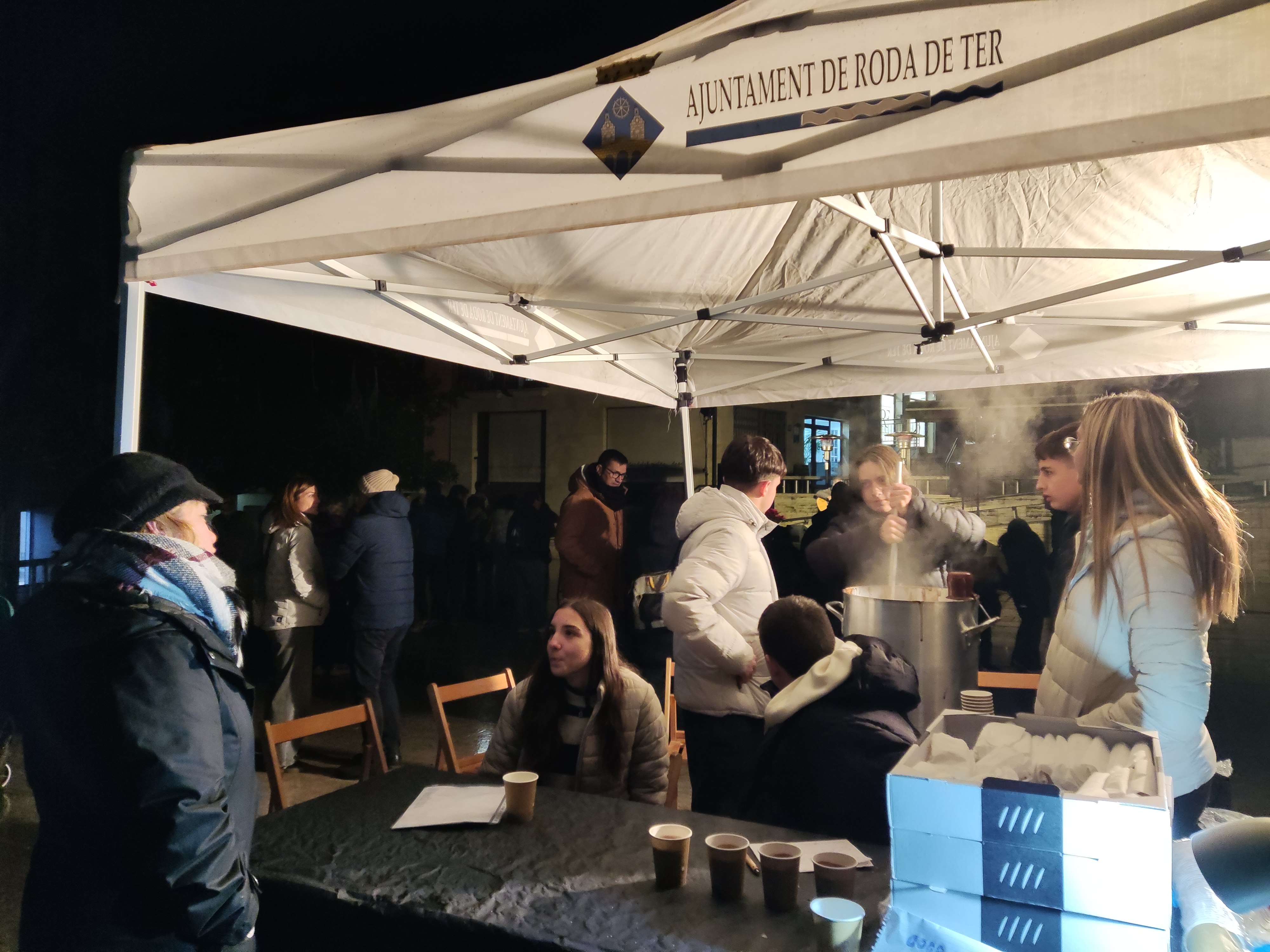 A les 19 h va arribar un dels moments més esperats: la tradicional encesa dels llums de Nadal, que enguany va anar a càrrec de l’alcalde de Roda de Ter, Toni Mas. El compte enrere col·lectiu va il·luminar els carrers del municipi i va marcar oficialment l’inici de les festes. Per ajudar a combatre el fred, els nois i noies de l’Institut Miquel Martí i Pol de Roda van vendre xocolatada i coca, per finançar-se el viatge de final de curs.